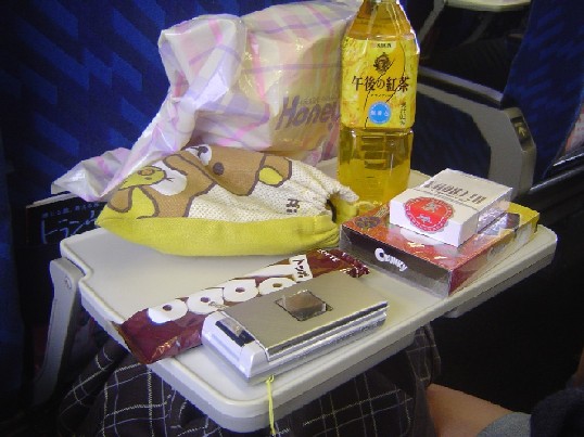 (画像:新幹線での友達の机の上)